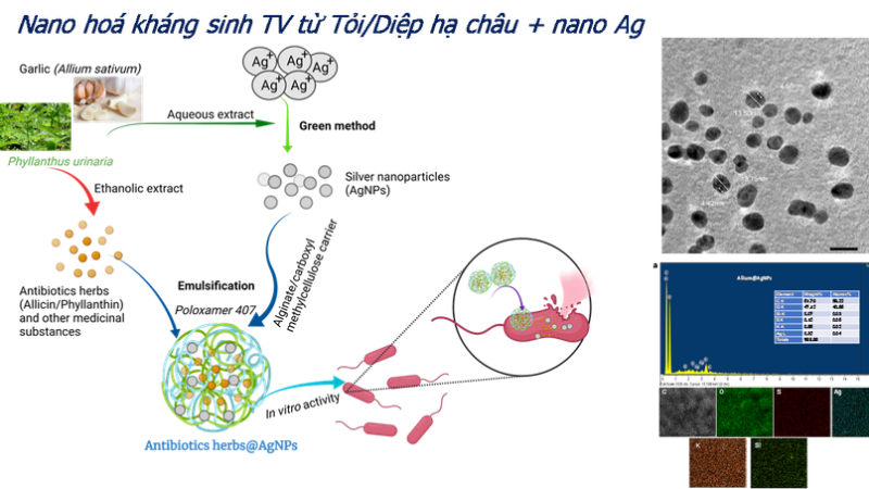 Nano hóa kháng sinh TV từ Tỏi/Diệp hạ châu + nano Ag.