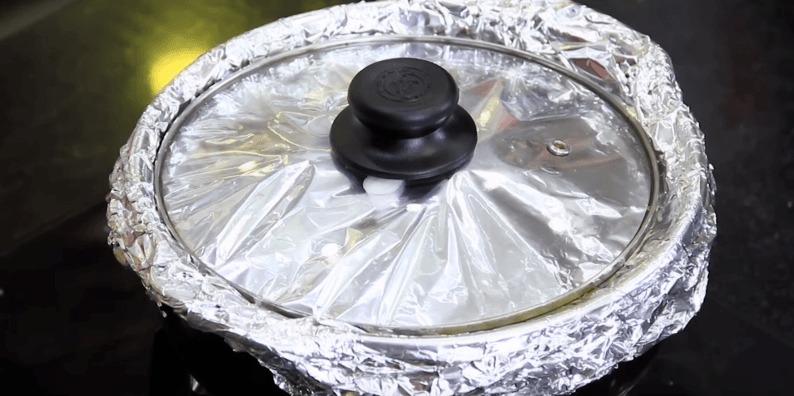 Dùng giấy bạc và bọc kín miệng nồi giúp cho thịt gà chín từ trong ra ngoài và thịt gà sẽ mềm ngọt nước